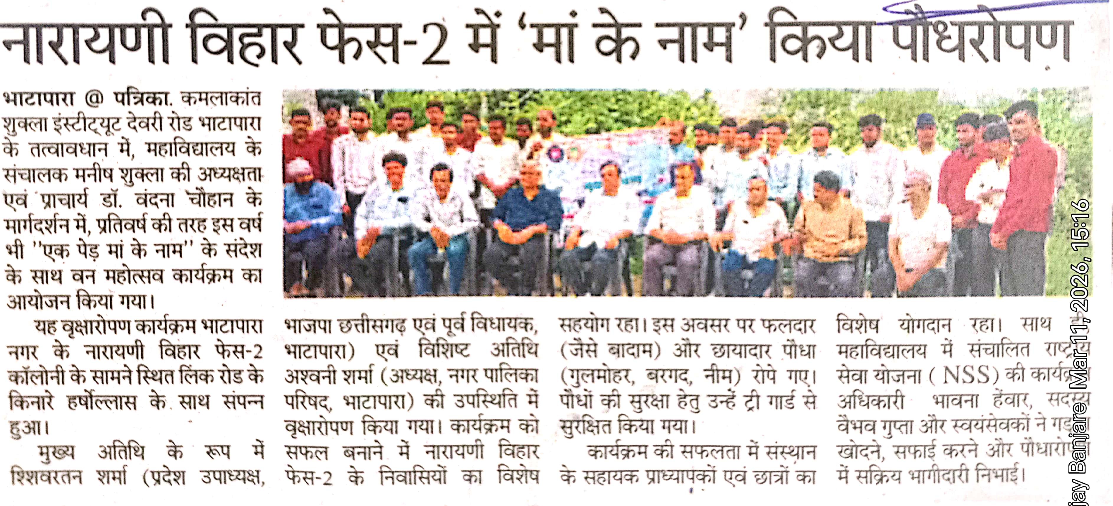 एक पेड़ माँ के नाम पौधरोपन नारायणी विहार मे
