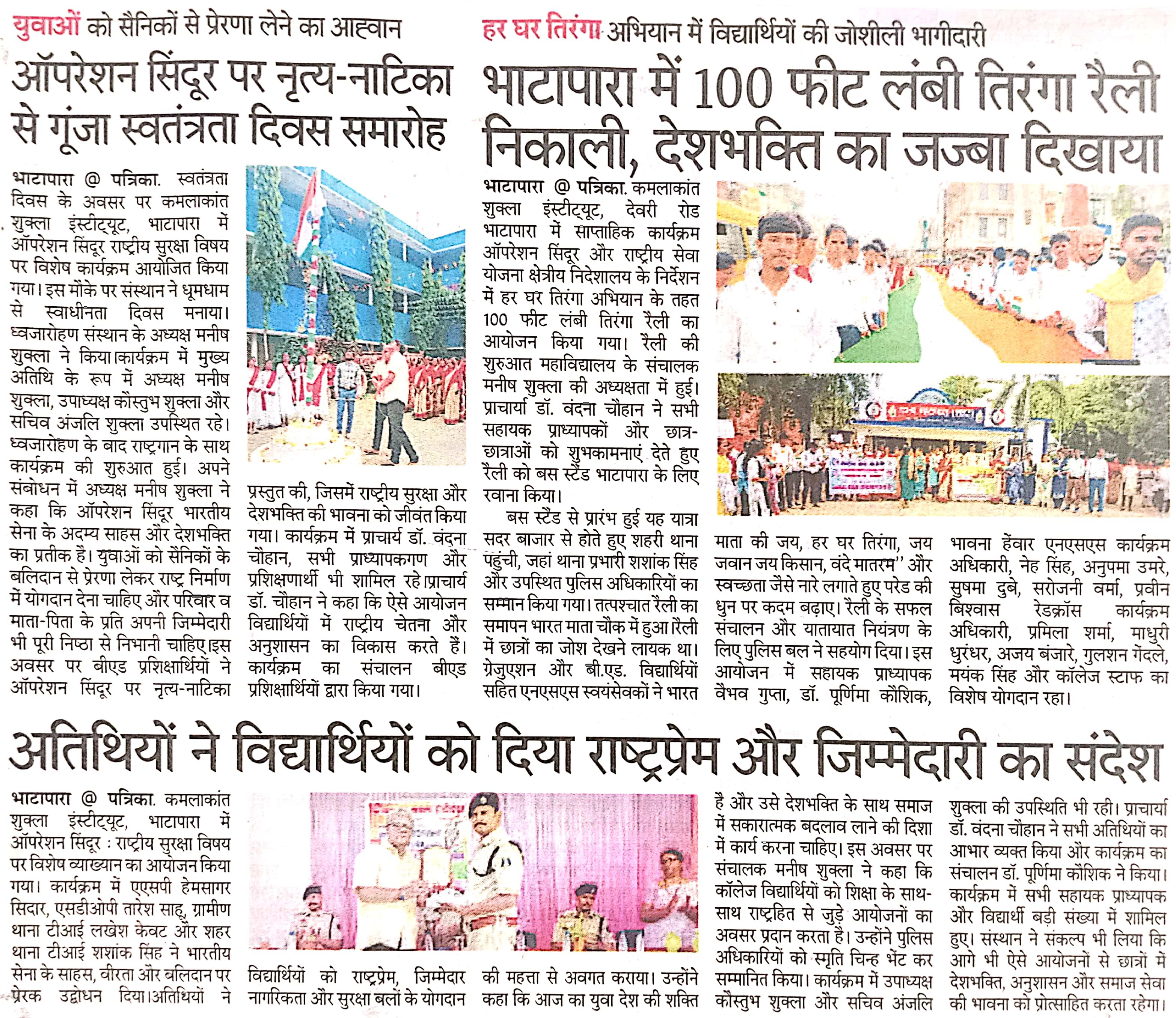 ऑपरेशन सिंदूर के उपलक्ष्य मे तिरंगा यात्रा एवं अन्य कार्यकर्म